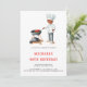 Beau et simple barbecue 40ème anniversaire invitation avec une illustration d'un homme noir cuisine un steak. Illustré et dessiné par Patricia Alvarez.