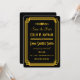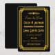 Ces faire-part de save the date présentent une palette de couleurs noir et or, un cadre géométrique et d'autres détails stylistiques, tous inspirés de l'Art déco et des années folles. Vous pouvez personnaliser les champs de texte d'exemple à votre goût.