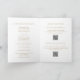 Élégant tout en un faire-part de mariage plié avec une conception simple et minimaliste de faux or. Une disposition classique avec vos noms en gros caractères pour une touche moderne à cette invitation de style traditionnel. Le panneau de droite intérieur comporte deux codes QR. Ajoutez simplement votre URL au modèle et un code QR sera généré. Si vous préférez, vous pouvez supprimer les codes QR dans l'outil d'édition de conception. Cette faire-part de mariage est parfaite pour un mariage formel.