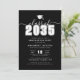 A sleek and modern graduation party invitation featuring black backgrounds on both the front and back for a bold, polished look. “Class of Year” appears in large, eye-catching text at the top, with “Class of” shown in a soft light gray and the year in crisp white. A customizable graduation cap icon sits above for a classic finishing touch.