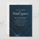 Moderne et minimaliste Bleu foncé 90e anniversaire Invitation avec un motif géométrique néon sophistiqué. Le texte blanc clair sur l'arrière - plan bleu foncé est vraiment pop.