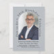 Aussi unique que l'individu célébré, cette invitation moderne de fête du 70e anniversaire comporte un merveilleux modèle photo en forme d'arc à personnaliser avec la photo de votre honoré. Un arrière - plan bleu poussiéreux ajoute une touche colorée au design. Le modèle de texte personnalisé avec du texte qui longe le bord extérieur de la photo a un charme moderne. Personnalisez le modèle de texte avec les détails de votre partie. Le verso de cette invitation est vide avec seulement la couleur bleue solide, donc si vous avez besoin d'espace supplémentaire pour ajouter des instructions, des instructions de conduite, etc, vous pouvez ajouter votre texte souhaité au verso de la carte aussi.