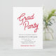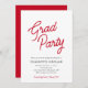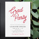 Cette invitation de fête de remise des diplômes présente un design simple accentué par un texte en écriture rouge qui indique "Fête de diplômés". Personnalisé avec tous les détails de votre fête de célébration de remise des diplômes.