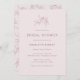 Invitation Simple Rose Bridal Shower. Romantique et intemporelle, cette invitation à la douche nuptiale rose vif présente des pivoines florales d'art vintage qui peuvent être utilisées pour toute saison mariage. Ajoutez une touche d'élégance moderne et classique à votre journée spéciale avec ces invitations élégantes et magnifiques. Texte rose poussiéreux sur un arrière - plan rose pâle avec un joli motif de coordination à l'arrière.