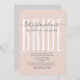 Simple, élégante, typographie, invitation à la douche nuptiale minimale rose et blanche avec script moderne gris.