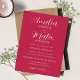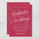 Les noms des couples mariages sont écrits dans un élégant script blanc. Les détails du mariage sont écrits dans une police serif classique. Des rayons de soleil très subtils jouent à l'avant et à l'arrière. Il y a une version sans rayons de soleil à l'avant. Si vous préférez un design plus minimaliste, vous pouvez simplement supprimer les rayons solaires. Ce faire-part de mariage fait partie de Simple Script and Sunlight Collection.