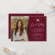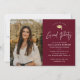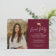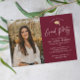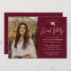 Simple Script Maroon Photo Graduation Party invitation avec élégante feuille d'or casquette et typographie minimaliste. Cliquez sur le bouton Personnaliser pour customiser cette conception. Si vous souhaitez customiser davantage comme modifier les tailles de police et les couleurs arrière - plans, cliquez sur le bouton Personnaliser, puis faites défiler vers le bas et cliquez sur l'outil Modifier avec la conception pour plus d'options.