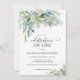 Chic, Simple mais Élégant Eucalyptus Verdure Célébration de la vie Invitation mettant en vedette notre belle sauge vert eucalyptus et bleu poussiéreux verdure et typographie moderne. Facile à customiser avec vos informations pour une invitation simple et moderne. Veuillez nous contacter à cedarandstring@gmail.com si vous avez besoin d'aide pour la conception ou les produits correspondants.