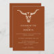 Un design simple et minimaliste présente un crâne de vache bohème occidental sur un arrière - plan orange du désert. Tous les textes et couleurs sont entièrement modifiables. Le verso de l'invitation comprend un code QR pour votre site Web mariage.