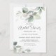 De magnifiques branches aérées de verdure botanique aquarelle mettent en valeur cette simple et élégante invitation à la douche nuptiale. Ce design d'inspiration nature est toujours dans le style et fonctionne bien avec une variété de thèmes de fête. L'appariement des faces de type comprend du texte manuscrit tendance mélangé à une combinaison de lettres serif et san serif. Personnalisez le texte avec les détails de votre événement.