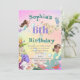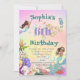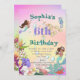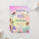 Une invitation personnelle d'anniversaire à thème Mermaid avec une Sirène aux cheveux foncés et d'autres sous les créatures de la mer. Modifiez facilement les informations pour votre propre conception de fête d'anniversaire personnalisée. L'arrière - plan a une couleur arc-en-ciel.
