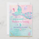 Cette adorable invitation présente une queue de sirène colorée avec des motifs de parties scintillant en faux or.