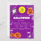 Un design moderne simple avec aquarelle skateboard fantôme Halloween citrouille violet invitation pour fêter l'anniversaire et Halloween en famille et ami pour les femmes et les filles pour les amateurs de patins