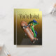 Une jeune tortue montrant ses compétences en skateboard. "You're Invited" est écrit au-dessus de la tortue. Montré sur un arrière - plan marron dégradé. Une jolie façon de reconnaître un anniversaire de garçon.