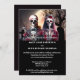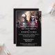 Présentez notre invitation économique qui donne le ton parfait pour votre célébration éffrayante! Imaginez une charmante mariée en squelette et un marié debout côte à côte dans un cimetière illuminé par la lune, entouré par la lueur éthérée des croix et des arbres morts. Le marié porte un smoking noir sur mesure orné de roses noirs et rouges de prune et la mariée porte un voile blanc éthéré avec des roses de couleur vin bordeaux. Habillées de tenues mariages, elles sont l'incarnation du éffrayant chic, prêtes à célébrer leur amour éternel ! L'arrière - plan noir foncé améliore l'atmosphère étrange, et il dispose de modèles de texte blanc modifiables, vous permettant de personnaliser votre invitation avec votre propre libellé maladroit. Parfait pour tout rassemblement mariage ou éffrayant d'Halloween, cette invitation ravira vos invités avec son charme amusant et effrayant !