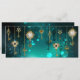 Or, clés antiques avec engrenages et cadrans accrochés sur chaînes dorées sur arrière - plan vert lumineux.