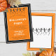 Cette façade de carte à plat en modèle noir et blanc sur un arrière - plan orange et noir est une invitation amusante à la fête d'Halloween. La bordure supérieure a des squelettes dansants.La conception de squelette correspondant centré sur le dos sur un arrière - plan orange. Personnalisez le texte modèle de votre partie, supprimez le texte ou cliquez sur customiser pour sélectionner le style, la taille et la couleur de la police que vous souhaitez.