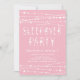 Soirée d'anniversaire de sommeil avec une police étoilée sur un arrière - plan rose ornée d'une guirlande étoilée blanche. Retournez notre invitation moderne pour voir un retour de coordination pour une touche spéciale supplémentaire.