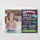 Slip et Slide invitation de bain d'anniversaire, rose, vert, violet et turquoise colorimétrique adapté à tout âge. Ajoutez votre propre libellé et photo dans le modèle, pour redimensionner la photo et plus de personnalisation (couleur de police, style de police, éléments de déplacement, arrière - plan), cliquez sur personnaliser, faites défiler vers le bas et cliquez sur le lien "cliquer pour customiser plus loin".