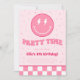 Fun rose Preppy Happy Face Invitation! Un thème rétro tendance amusant, avec des tons roses, éclair, étoiles et à damiers motif.