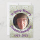 Cette carte est conçue pour honorer la mémoire d'une personne à un service commémoratif ou à un enterrement. La photo est mise en place comme un modèle à remplacer par la photo de celle dont on se souvient. Autour de la photo sont blancs Snowball Bush amas de fleurs. "In Loving Memory" tourne autour de la photo. Le nom de la personne tourne autour du bas de la photo. L'année de naissance et l'année du décès se trouvent en bas de la carte. Cette carte peut être utilisée à un service commémoratif ou envoyée à ceux qui ne peuvent pas assister au service. Sur le dos est un poème avec des bouquets de fleurs de Snowball Bush dans deux coins. L'arrière - plan est vert clair avec une bordure violette autour du poème. Les mots violets sont conçus pour être personnalisés. Le design peut également être personnalisé avec votre propre découpe photo si vous le souhaitez. Si vous avez besoin d'aide pour personnaliser, s'il vous plaît contactez-moi.