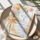 A soft and romantic floral design featuring peach and blue wildflowers tied with a powder-blue ribbon. The airy composition and hand-drawn feel make it perfect for spring or summer weddings, bridal showers, or garden-themed celebrations. A timeless blend of rustic charm and elegant simplicity.