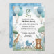 Invitation Soft Boho Bear Blue Cub Welcome Baby Boy Douche