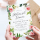 Élégantes invitations à dîner à la répétition florale avec une bordure de rose aquarelle et des fleurs rousses avec des feuilles vert vif. L'expression "Dîner de répétition" est affichée dans un script de calligraphie moderne avec les détails de votre dîner présentés ci-dessous. L'invitation revient à un arrière - plan rose vif. Conçu pour coordonner avec notre collection de mariages floraux rose pâle.
