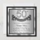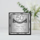 Invitation à la fête du 50e anniversaire en noir et argent avec des numéros en diamant et une bannière sur un arrière - plan en argent et noir. Cette magnifique invitation à la fête du 50e anniversaire en argent est facilement customisée pour votre événement. Vous pouvez modifier la couleur de l'arrière - plan. Ce design frappant fonctionne bien pour un homme ou une femme. Il s'agit d'un design imprimé sans véritable diamant, argent, parties scintillant, etc.