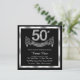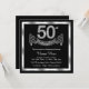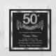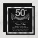 Elégante invitation à la fête du 50e anniversaire avec des numéros de diamant et une bannière sur un arrière - plan en argent et noir. Cette magnifique invitation à la fête du 50e anniversaire en argent et en noir est facilement customisée pour votre événement. Vous pouvez modifier la couleur de l'arrière - plan. Ce design frappant fonctionne bien pour un homme ou une femme. Il s'agit d'un design imprimé sans véritable diamant, argent, parties scintillant, etc.