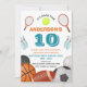 Célébrez la journée spéciale de votre petit athlète avec cette invitation amusante et colorée d'anniversaire sportive ! Doté de raquettes de tennis, de basket, de football, de baseball, etc., ce design ludique "Game Time" est parfait pour tous les enfants amateurs de sport. Customisez avec le nom de votre enfant, son âge, les détails de la fête et les renseignements sur le RSVP. Un grand choix pour les garçons ou les filles qui aiment le sport et veulent une fête d'anniversaire énergique et amusante.
