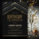 Une élégante invitation à la fête d'anniversaire d'adulte géométrique en noir et or. Convient à tout âge.
