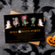 Invitations amis à vous halloween costume fête d'anniversaire en style, avec cette incroyable invitation halloween avec des monstres éffrayants sur un arrière - plan noir idéal pour toute fête costumée.