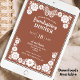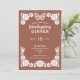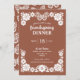 Donnez le ton à votre célébration d'Action d'Ami formelle avec cette invitation unique à la fête de Thanksgiving. L'arrière - plan en terre cuite automnale est riche d'oeuvres d'art complexes, dessinées à la main et inspirées de Talavera, qui présentent des fleurs délicates et un papillon d'un blanc immaculé. Le texte en gras blanc se distingue par les tons chauds, et tous les modèles sont entièrement personnalisables pour les détails de votre événement. Parfait pour ceux qui organisent un rassemblement plus formel, ce design unique est disponible à la fois sous forme d'invitation imprimée ou de téléchargement numérique pratique, ce qui facilite le partage par email, texte ou médias sociaux.