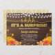 N'IMPORTE QUEL ÉVÉNEMENT SURPRENANT. Tous les textes en dessous de l'or "C'est une surprise" sont modifiables. Elégante fleur d'aquarelle et or surprise invitation à la fête avec la conception de la chaîne sur arrière - plan de bois rustique. Classique, féminin et glamour. Parfait pour tout événement ou fête d'anniversaire à tout âge. Obtenez cette belle invitation maintenant ! Thème : fête surprise Occasion : tout événement surprise - fête de la retraite, fête d'anniversaire, douche nuptiale, baby shower, fête d'anniversaire. Saison : automne, automne, Thanksgiving Couleurs : Brown, or, orange, jaune, automne. Graphiques : bois brun rustique, lustre à cordes, fleur d'aquarelle, feuille en chute, faux confettis d'or.