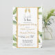 Ce design Cheers to Love présente deux verres de champagne dans un toast pour aimer une fête de fiançailles. Un joli cadre doré aux accents botaniques verts entoure le texte à l'arrière et le devant de cette invitation de fiançailles moderne et chic. Personnalisez cet objet avec vos noms et la date de votre événement.
