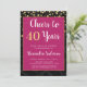 Salutations à 40 ans Hot rose et Gold Foil Confetti 40e anniversaire de fête Invitation. Cette invitation à la fête d'anniversaire de femme moderne et élégante est parfaite pour une fête d'anniversaire de Cheers to Quarty Years. L'invitation comprend des confettis en feuille d'or, arrière - plan damassé noir et typographie en écriture blanche. Veuillez contacter le concepteur pour customiser les articles correspondants.