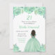 Cette invitation à la fête d'anniversaire présente des fleurs florales vert menthe faux parties scintillant et une belle princesse à la peau foncée et une robe élégante. C'est parfait pour une fête d'anniversaire.