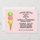 De mignons invitations de fête d'anniversaire sur le thème du tennis avec une ligne amusante et des balles de tennis colorées empilées comme des boules de crème glacée.