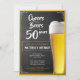 Soirée de fête d'anniversaire simple et propre pendant 50 ans sur plateau noir tendance avec cadre or et pinte en verre avec bière dorée. Vous pouvez facilement changer les années de célébration à 30, 40, 60 ou autre