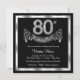 Elégante invitation de fête de 80e anniversaire noir et argent avec numéros de diamant et bannière sur un arrière - plan argent et noir. Cette belle invitation à la fête du 80e anniversaire en argent et noir est facilement customisée pour votre événement. Vous pouvez modifier la couleur de l'arrière - plan. Ce design frappant fonctionne bien pour un homme ou une femme. Il s'agit d'un design imprimé sans véritable diamant, argent, parties scintillant, etc.