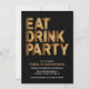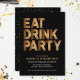 Célébrez en style avec cette amusante invitation de fête d'anniversaire "Eat Drink Party"! Doté d'une grande typographie dorée sertie contre un arrière - plan noir solide, cette invitation est parfaite pour toute célébration d'anniversaire adulte. Le modèle personnalisable vous permet d'ajouter facilement votre nom, âge et détails de fête dans la typographie moderne blanche et or et le dos de l'invitation a un motif de taches d'or et étoiles.