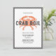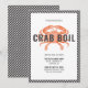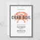 Invitation à une fête de crabe ébouillanté avec un motif à carreaux qui donne une atmosphère conviviale.