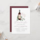 Vous planifiez un dîner de dégustation de vin ou un dîner de dégustation de vin, ou vous organisez un grand événement dans une cave ou un vignoble ? Invitation vos invités avec nos élégantes invitations à dîner dégustation de vin, avec une bouteille de vin rouge bordeaux et deux verres à vin et ornée de feuilles d'eucalyptus vert aquarelle et feuillage. "Cheers to Love" apparaît dans le script de calligraphie chic lettering. Pour une touche finale, personnalisez le étiquette de bouteille de vin avec les initiales du couple. Parfait pour des dîners de répétition mariages dans un cadre viticole, vignoble ou vignoble.