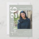 Célébrez en style avec ce script de calligraphie minime photo Graduation Party Invitation. Design dispose d'un arrière - plan vert sage, qui peut être changé à n'importe quelle couleur, une image de la grade, le texte 'vingt25 dans le script de calligraphie et un modèle de parti moderne qui est facile à customiser en utilisant le modèle fourni. L'envers est décoré de planches de mortier.