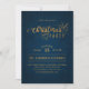 Élégante et moderne invitation de noël doré avec arrière - plan bleu. Personnalisez ce design en remplaçant le texte par le vôtre.