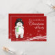Drôle dessin animé Frosty the Snowman sur un arrière - plan rouge enneigé. Très mignonne et amusante invitation à la fête de Noël.
