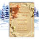 Célébrez la saison avec cette élégante invitation à la fête de Noël dorée, avec un ruban doré luxueux, des cadeaux festifs et des lumières scintillantes.