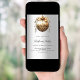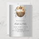 Une invitation à une fête de Noël. Un arrière - plan faux argenté. Décoré d'un grand bauble doré à l'aspect vintage. Personnalisez et ajoutez les détails. Texte noir.