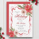 L'élégante Coquette Floral Christmas Party présente un design de vacances chic avec des bouquets de fleurs d'hiver aquarelle avec verdure sur un cadre en ruban rouge et rose. Ajoutez vos informations d'invitation de fête de vacances personnalisées dans le centre. Parfait pour les fêtes de Noël en famille et entre amis. Créé par Evco Studio www.zazzle.com/store.evcostudio